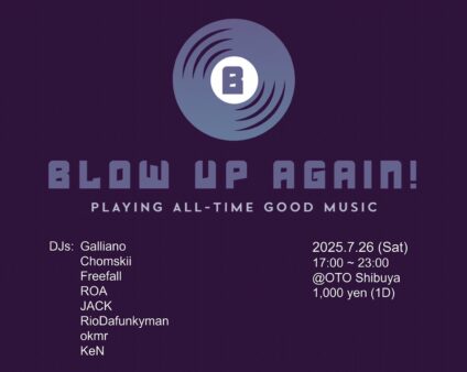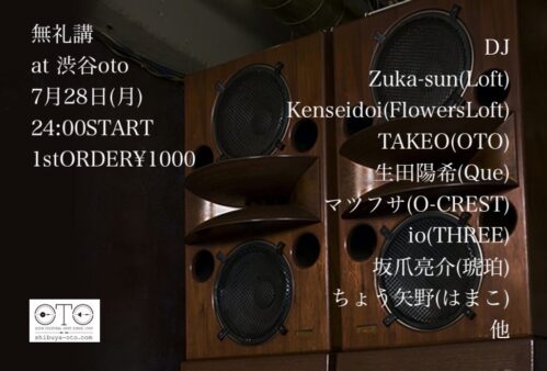 DJ vinylDJ Eiji Takehana Hironobu Jyounai Kenta Tominaga *When taking photos/videos and posting them on SNS, etc., please obtain permission from the person in question. *Please be considerate when peo…