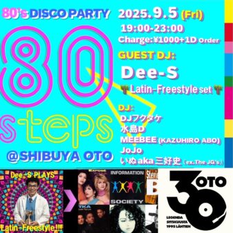 GUEST DJ Dee-S(Latin-Freestyle set) DJ DJフクタケ 水島D MEEBEE(KAZUHIRO ABO) JoJo いぬ aka 三好史(ex.The JG’s)