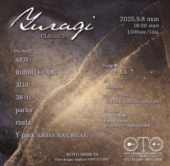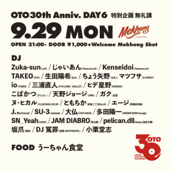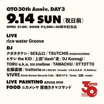 9/12, 9/13, 9/14, 9/15, 9/22, 9/29, 10/31 OTO 30TH ANNIVERSARY (DAY.1) 2025.9.12(FRI)OPEN 21:00〜DOOR ¥2,500+1drink 30周年記念品 LIVESeihoShitaraba DJSAKANA(Patching For Life)JUN(80KIDZ, Patching For Life)h…