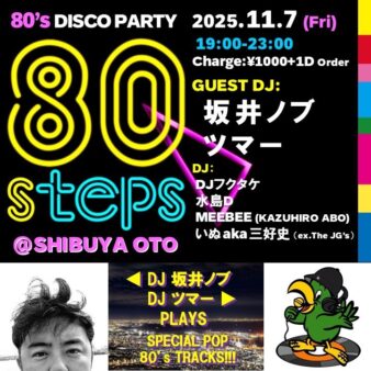 GUEST DJ 坂井ノブ ツマー DJ DJフクタケ 水島D MEEBEE(KAZUHIRO ABO) いぬ aka 三好史(ex.The JG’s)