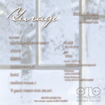 DJs (AtoZ) akabane (SIGNUM/whim?) chiori 偶然寺 itoitoi (糸井寫眞) kotti maikoo (#depth) Y-park (URBAN SOUL RELAX) Yuragi飯 ゆぅたまる 占い Mine マッサージ HASSY (Inflexion bodycare) Flyer Design maikoo (#高円寺DJ部室) Organi…