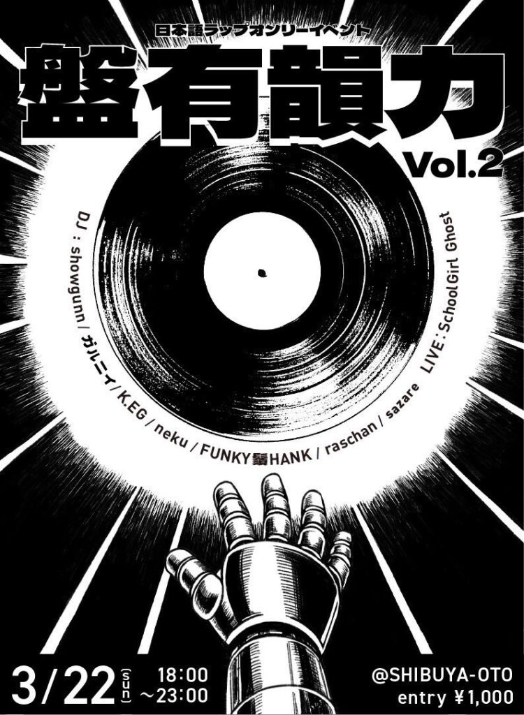 盤有韻力 vol.2 2026.03.22 Sun 18:00 〜 ¥1,000(+1drink) DJ 番犬K.EGnekuFUNKY鬚HANKraschanshowgunn LIVE SchoolGirl Ghost