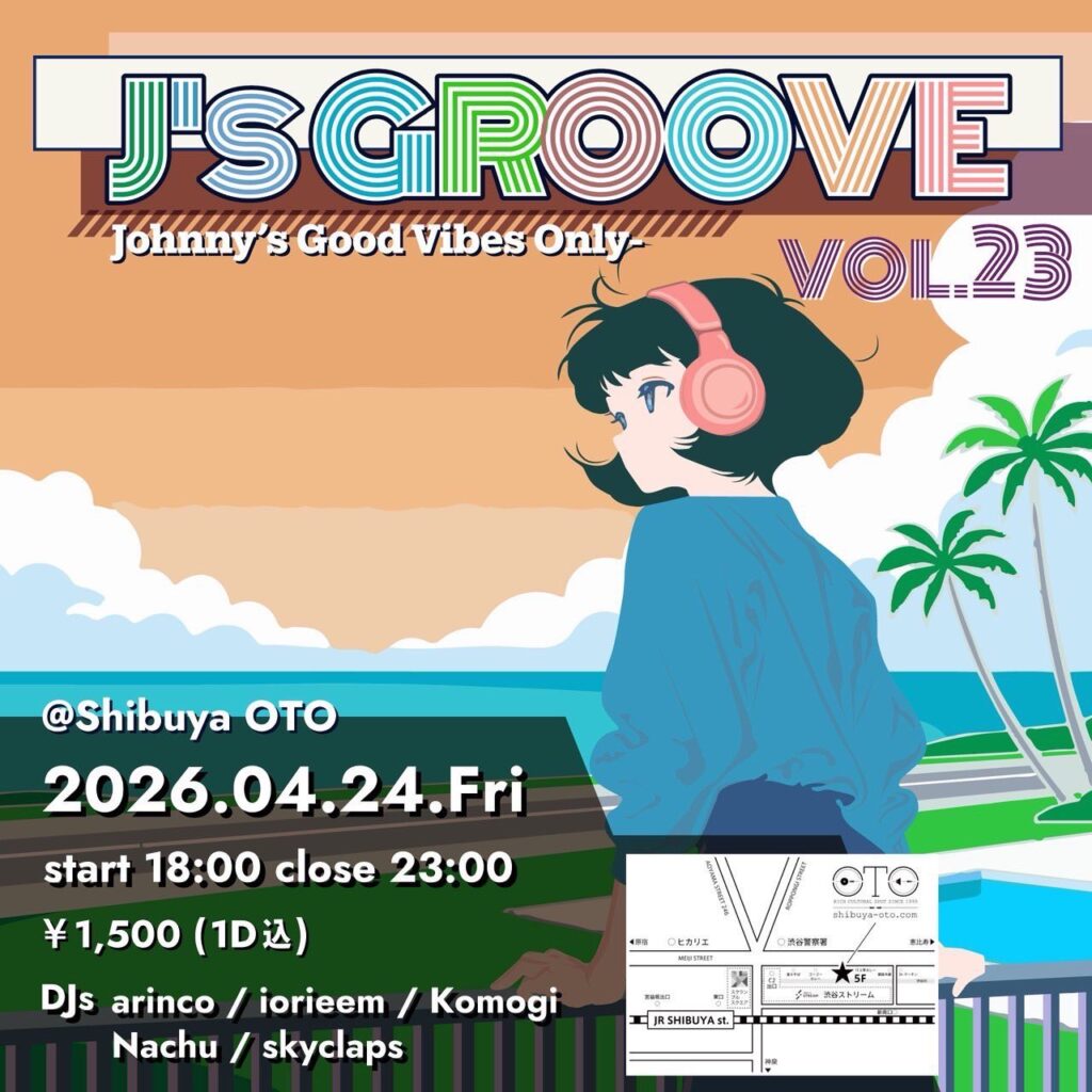J’s GROOVE vol.23 2026.04.24 Fri 18:00 〜 ¥1500 with 1drink DJ arincoiorieemKomogiNachuskyclaps VJ skyclaps